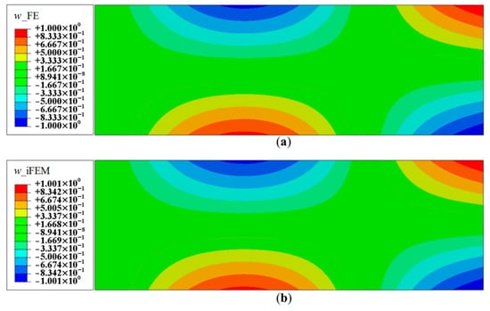 Since Mode 1 is the first bending mode, the effect of rotation, θx, is minimal. Hence, Mode 2 (the first torsional mode) is also explored. The contour plot of the deflection, w, using a full-field set of sensors is shown in Figure 8. As in the previous case, these results are highly accurate, with a maximum error of less than 0.03%.