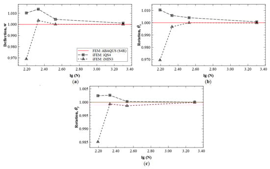 - Tessler, A.; Hughes, T.J.R. An improved treatment of transverse shear in the Mindlin-type four-node quadrilateral element. Comput. Methods Appl. Mech. Eng. 1983, 39, 311–335. [Google Scholar] [CrossRef]