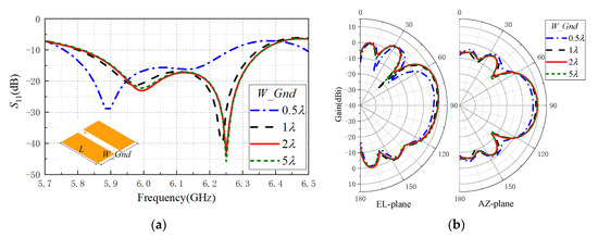 - According to the discussion about ground plane, the width of ground was determined to be 125 mm (1.5λ), and the length was the same as the length of the dielectric slab.