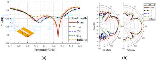 - The end-fire gain in 0° direction remains larger than 9 dBi, even when the metal ground plane is longer than the dielectric slab with 5λ in longitudinal direction.