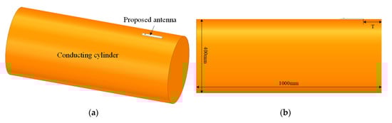 - Wang, P.; Wen, G.; Zhang, H.; Sun, Y. A Wideband Conformal End-Fire Antenna Array Mounted on a Large Conducting Cylinder. IEEE Trans. Antennas Propag. 2013, 61, 4857–4861. [Google Scholar] [CrossRef]