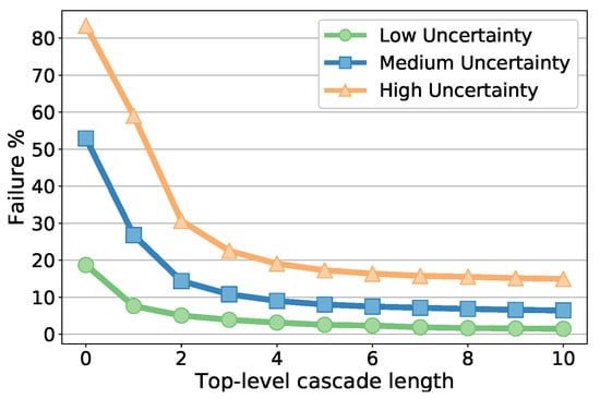 Alignment failure percentages for varying down-scales at the three levels of localization uncertainties. In bold, the optimal performance for a given uncertainty level.