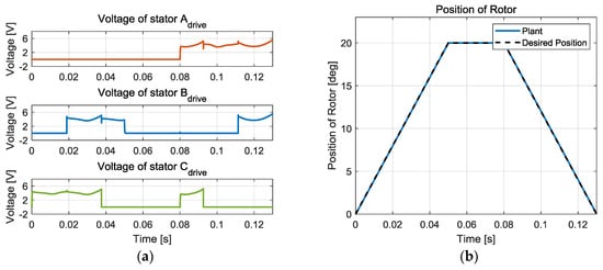 Example of position control operation: (a) Input voltage, (b) Rotor position.