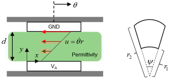 When input voltage is supplied to the stators, torque is generated, and the rotor rotates. The frictional resistance is generated by the dielectric material as the rotor rotates. Figure 7 explains the viscous friction resistance in the dielectric material.