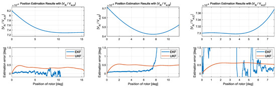 The position estimation results of each measurement of vR to vin,A, vin,B, and vin,C based on UKF.