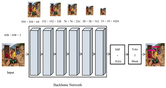In addition to SSP, Path Aggregation Network (PAN) [51] is used as a parametric polymerization mechanism for various bone and detector levels instead of Feature Pyramid Network (FPN) [52] in the Yolo fourth version. It is a bottom-up path enhancement that seeks to promote the flow of data that can contribute to the optimization of the pyramid of features. PANET designed adaptive feature pools to connect the feature grid to all feature layers to allow useful information from each feature layer to transfer directly to the suggested sub-network beneath. Yolo3 is utilized as an anchor-based detection model network head [53]. In addition to these, the residual connections in the deeper Yolo3 mold network structure infer multi-scale detection that enhances mAP and greatly increases small object detections.
