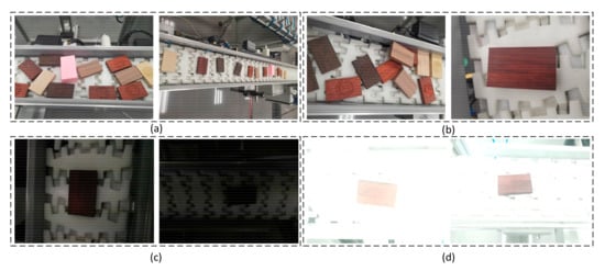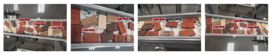 There are many types of images in the field of vision of visual systems in the industrial environment, especially for a mobile robot arm installed on an automated guided vehicle (AGV) []; namely, color, shape, size, and texture of a target object are similar to a certain extent, so how to reasonably classify targets is a prerequisite for realizing the function of robot intelligent perception in a visual servo system. In order to facilitate the realization of intelligent perception system functions, this paper studied target shape, color, size, unevenness, texture, and other factors and selected objects with similar features that were likely to cause interference to target object detection. According to the difference between the object and target object in different dimensions within the camera’s field of view, to distinguish interfering objects from target objects, the robot arm performs the next action according to the judgment of the intelligent perception system. Characteristics of the target and interference objects are given in Table 1, the setting of the interference target includes the interference factors that can be encountered in the process of target recognition under normal circumstances, including only different textures, only different colors, only different edges, only different shapes, etc. These factors will cause great difficulty to target identification.