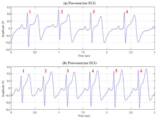 (a) Pre-exercise ECG (b) Post-exercise ECG.