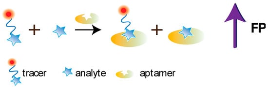 At present, a number of studies have been devoted to the development of FPA using aptamers; the main achievements in this area are summarized in several reviews [8,27,40]. The principle of the competitive FPA using aptamers is demonstrated at the Figure 6.