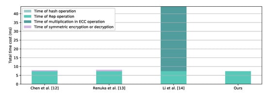 - We show the performance analysis of the proposed scheme. We compared the proposed scheme with that of Chen et al. [12], Renuka et al. [13], and Li et al. [14] to show how efficient our proposed scheme is.