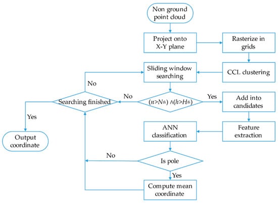 Flow chart of pole candidate extraction from a nonground point cloud. CCL: connected-component-labeling.
