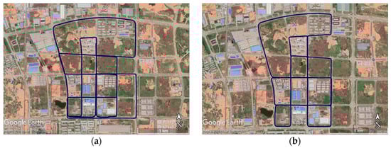 The experimental data was collected in a suburb area in Wuhan City in an open-sky environment to ensure a high-quality GNSS RTK (Real Time Kinematic) signal and the precision of the reference system. The RTK base station was set several kilometers away from the experimental field. The trajectories of the data collection projected on Google Earth are shown in Figure 4.