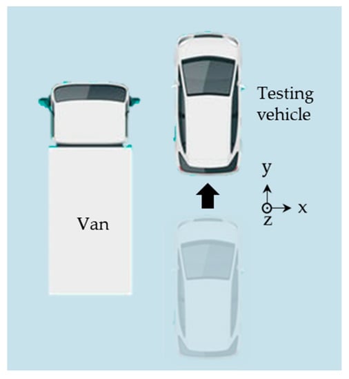- The testing vehicle stopped behind a car, and a van got closer and closer to it from the left-behind (shown in Figure 11a).