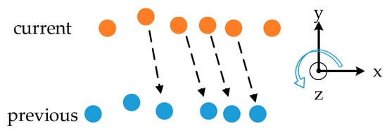 On the other hand, point clouds of poles are obtained by the algorithm introduced in Section 2.2. Consequently, the mean of x and y marked as pole feature points can be used to optimize the translation in the x and y directions and yaw angle of the vehicle by minimizing the horizontal distance between correspondences in the m-frame: