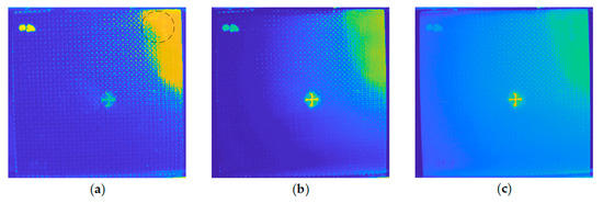 Comparison of the different preprocessing implementation details using the INTBCB specimen: (a) Cropping and first 10 frames extraction in the cooling stage; (b) Cropping and 10 principal components extraction; (c) Without cropping and 10 principal components extraction.