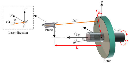 From Equation (7), it can be found that the probe installation parameters r, β and φ, and the rotor parameters L, α, and Ω, are involved in LRo(t). For a parallel laser beam, i.e., β ≈ 0, Equation (7) can be reduced as: