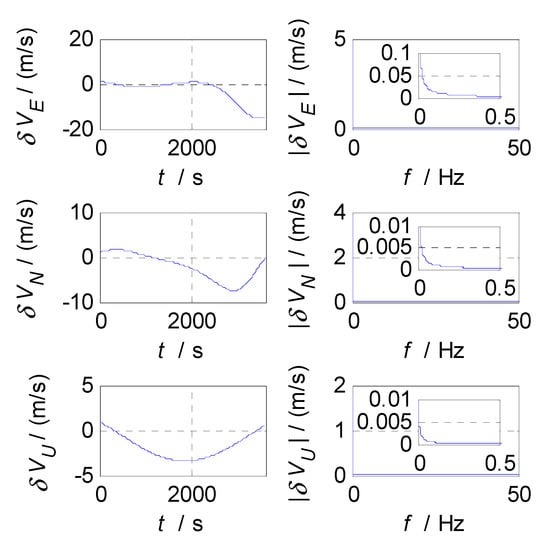 where is the spectrum bandwidth of INS errors. Under the condition of , the high-pass filter of CF2 can effectively eliminate the oscillation and divergence terms of SINS velocity errors. is the sampling frequency of GPS.