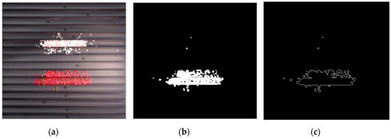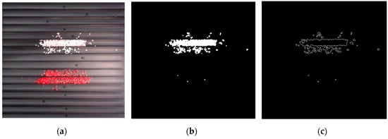 Since the applied morphological operation of dilatation leads to sharpening the edges of detected items, it is widely employed in many applications of vision systems [,]. Nevertheless, in the studied case it has been observed that the employment of dilatation operation causes an additional error in the target measurements. Therefore, it was decided not to use the morphological operator.