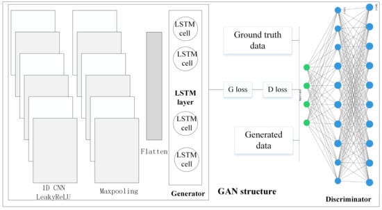 where , d stands for dilation rate and f for filter size. For the GAN structure, there are two NNs, Generator (G) and Discriminator (D). G and D contest with each other in which G generates candidates while D evaluates them. G’s training objective is to increase the error rate of D. The training could be expressed by the classical value function [] demonstrated in Equation (4).