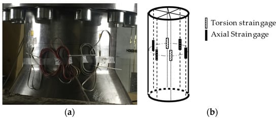 (a) Installed strain gages on the turbine shaft, (b) arrangement of the strain gages on the turbine shaft [].