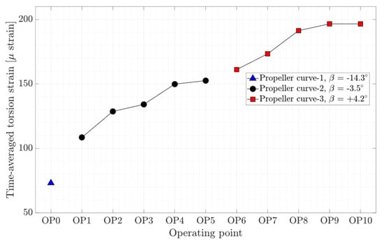 Time-averaged torsion strain obtained on the shaft at OP0–OP10.