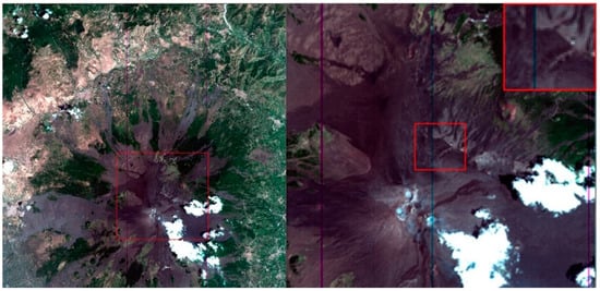 RGB (Red Green Blue) image of Mt. Etna and zoom on Piano delle Concazze (PdC) by PRecursore IperSpettrale della Missione Applicativa (PRISMA) acquisition on 31 July 2019.