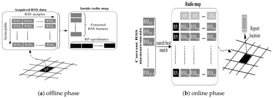 Since the indoor environment is much complex and less characterized than the outdoor environment, it is not easy to model the indoor radio signal propagation. The indoor signal propagation model is usually based on a propagation path and the known obstacles where minor indoor changes can render the signal propagation model invalid. The localization methods like trilateration [11] and weighted centroid (WC) localization [12] rely on the signal propagation model to estimate the distance from the RSS. Moreover, these methods require precise calibration of path loss exponent for every indoor environment. Fingerprinting localization is the most widely employed IPS that rely on radio fingerprint to produce localization result. However, this method’s training phase is labor-intensive and time-consuming, and the time complexity of the execution phase grows with the size of the localization area. Moreover, the instability of the RSS in the indoor environment enforces frequent update of the radio map database.