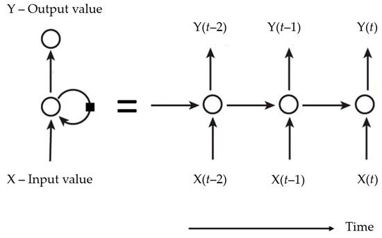 Figure 1 shows a simple structure of Recurrent Neural Network (RNN), composed of a hidden layer, which receives inputs, producing an output and sending that output back to itself. If the RNN is expanded in a time frame, at each time step t, this recurring layer receives inputs X(t), as well as its own outputs from the previous time step Y(t − 2), Y(t − 1), and so on [21].