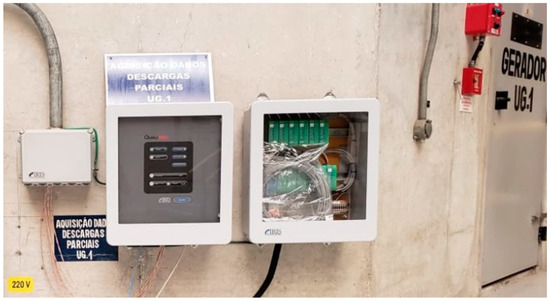 The partial discharge monitoring system was composed of power partial discharge epoxy mica capacitive sensors from Iris Power that were connected to the GuardII monitoring system for collecting of partial discharge pulse data through the sensors. Figure 4 and Figure 5 present, respectively, an illustration of this equipment and the installation panel for this system at the plant. Detailed information of the sensor including partial discharge pulse measurement, operating conditions, and testing and certification can be obtained in the Iris Power manual [38].