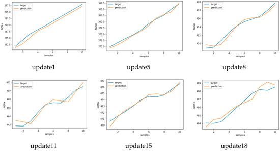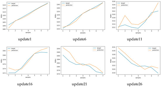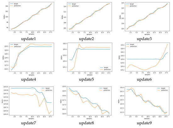 Target versus predicted values for nine consecutive updates for scenario 1—normal.