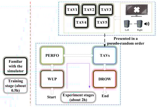 All subjects are required to take a half-hour training session to familiarize themselves with the simulator’s commands and interfaces before starting the experiment, the experimental flow is shown in Figure 4.