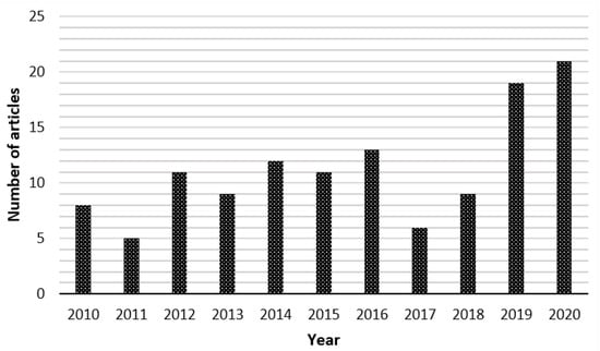 Number of articles per year. Only articles published prior to 31 October 2020 are counted.