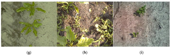 Example images from the training dataset. From all the dataset parts (a–i) one example image is given. Note the broad variation in lighting, growth stages, soil, presence of weeds and barely, camera quality, and scale.