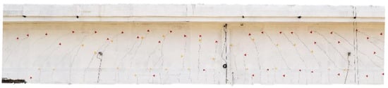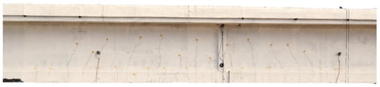 In this section, we report the most important results about the bridge deflection and the crack opening at the bottom of the prestressed girders. Data come from the sensors installed on the external girder T1, which experienced the greatest deflection and deformation. Figure 6 represents the locations of girders, displacement sensors (RVDT), and crack-opening sensors (LVDT).