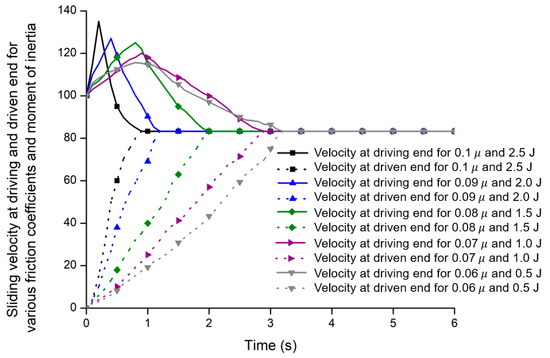 - The results were shown that the sliding velocity at the driving end decreased from 100 rad/s at 0.8 s, whereas the sliding velocity at the driven end rose from zero at 0.8 s and the engagement procedure took 1.20 s, whereas the angular velocity was 83.28 rad/s for the sliding friction coefficient of 0.09.