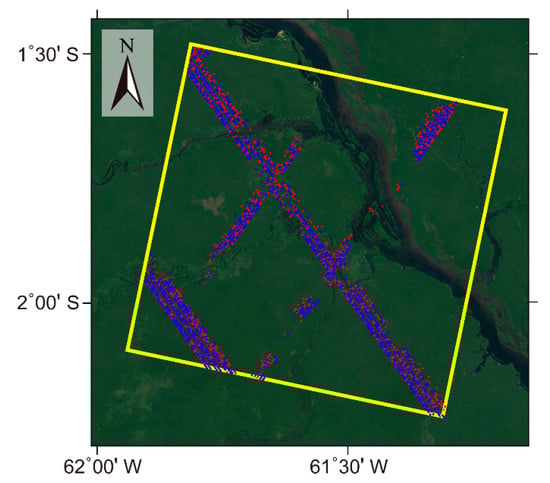 The study area is located in the Jau National Park in Amazon, Brazil, as shown in Figure 3. It is one of the largest forest reserves in South America, covered by a continuous and dense tropical rainforest. This area has a relatively flat terrain, with an elevation ranging from 0 and 120 m.