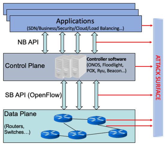 Software-defined networking (SDN) Architecture and Attack Surface.