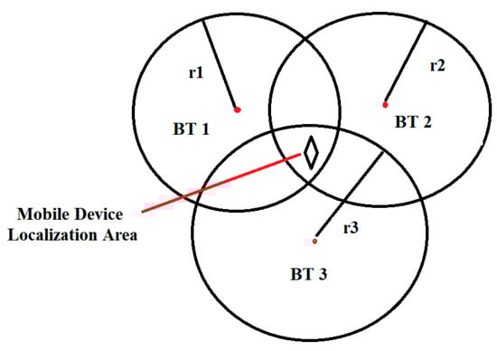A specific triangulation method for the location estimation using Bluetooth signals is also presented in [6], where a solution to determine a more precise location considers the dependence between the distance and the received signal strength. As a definition, the RSSI provides an estimate between an optimal received signal strength (golden receiver power rank) and the actual received signal strength, not a direct value of the RF strength. The solution presented herein limits the possible usage only at distances of 8 m from an access point, combining a triangulation method with mathematical least square estimation. Compared to Wi-Fi 802.11 standards, where a beacon can be detected either in the proximity or few blocks away from the receiver, the Bluetooth technology has the advantage of low power RF signals used, that is the detection of a similar device is possible within meters (therefore, more accuracy for indoor localization, for example). Such an advantage is exploited by some authors [7], where a solution for detecting mobile BT devices is proposed based on deployment of a series of base stations in a defined territory and using mostly the same technology as in cellular networks. In several paperwork [8,9,10] an exploration has been performed on the possibility to determine location, based on the simple use of the signal strength as a proxy for length, with not very encouraging results. This is due mainly to propagation effects in a complicated environment that create many reflections, diffractions, absorption of signals and generating artifacts. The researchers state that by carefully controlling the power of transmitted signal, it is possible to obtain an accuracy of around 1.2 m [11]. The study on the feasibility of location determination based on cellular approach is continued in [12] with a specific combinatorial model for the cells and possible beacon locations, selected from candidate beacon positions. The authors declare that with this combinatorial model and beacons setup they were able to reduce the effects of propagation distortion in specific indoor environments.