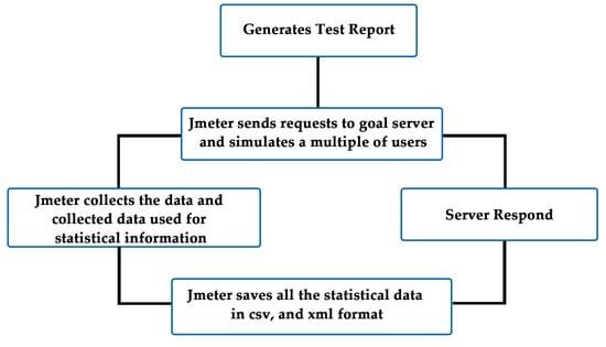 Apache JMeter is a free or open-source, pure Java-based, performance, stress and load testing tool that can be used to analyze the efficient behavior of organizations and calculate the performance of web applications under various load tests. A load test will simulate end-user behavior that methodology the bounds of a web application’s conditions. This tool can be used to design varying or heavy loads on a single or cluster of servers, networks, and concurrent users to test web applications or organizational structure. The work flow chart of the apache jmeter is shown in Figure 7.