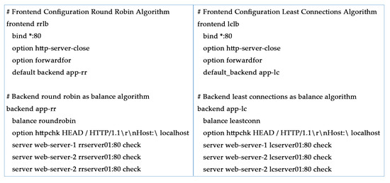 How to configure the round robin and least connections in the algorithm in the HAProxy configuration file are mentioned in Figure 10.