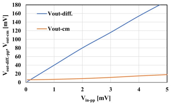 It is evident that the circuits work as lossy integrators, where the voltage gain can be controlled by . Usually, all transconductances are set to be equal for easy tuning. Figure 9c shows the lossy integrator based on the three-input OTA that is proposed in this paper. The ideal transfer function of the circuit in Figure 9c can be expressed as:
