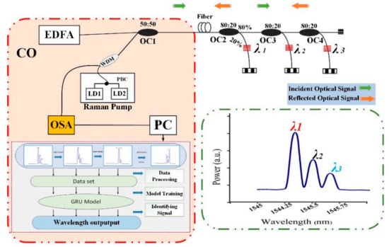 - Jiang, H.; Zeng, Q.; Chen, J.; Qiu, X.; Liu, X.; Chen, Z.; Miao, X. Wavelength detection of model-sharing fiber Bragg grating sensor networks using long short-term memory neural network. Opt. Express 2019, 27, 20583–20596. [Google Scholar] [CrossRef]