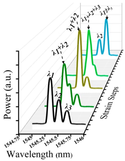 - Peng, P.-C.; Lin, J.-H.; Tseng, H.-Y.; Chi, S. Intensity and Wavelength-Division Multiplexing FBG Sensor System Using a Tunable Multiport Fiber Ring Laser. IEEE Photonicsd Technol. Lett. 2004, 16, 230–232. [Google Scholar] [CrossRef]