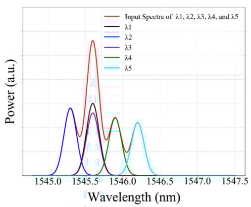 - Jiang, H.; Chen, J.; Liu, T.; Huang, W. A novel wavelength detection technique of overlapping spectra in the serial WDM FBG sensor network. Sens. Actuators A Phys. 2013, 198, 31–34. [Google Scholar] [CrossRef]
