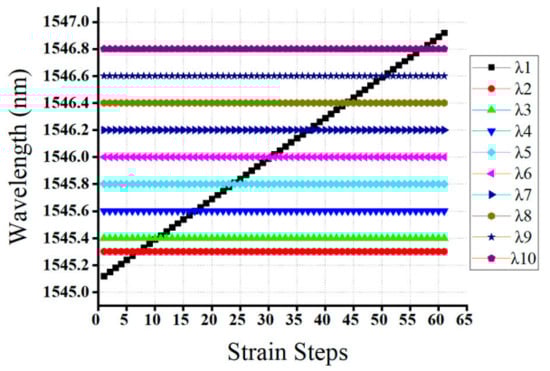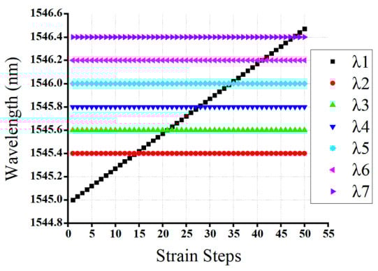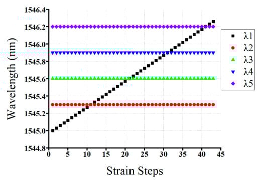 | Scenarios or Cases | Number of FBG Sensors | Number of Strain Steps | λ1 Wavelength Shift Value |