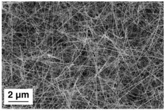 Secondary-electrons (SE) SEM image of tin oxide nanowires. Reproduced with permission from [35].