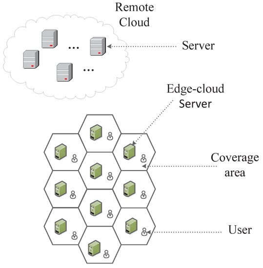 With the rapid development of large-scale cloud computing, more and more service providers have chosen to deploy content and services on the cloud. However, the traditional cloud computing environment is not suitable for Internet of Things (IoT) services [], especially for delay-sensitive services that involve sensors [], such as cognitive assistance, image recognition, mobile games and augmented/virtual reality (AR/VR) []. Generally speaking, such services are not only highly delay-sensitive, but also have complex computing requirements. For this problem, the researchers propose a mobile edge computing model, i.e., deploying an edge-cloud server on the base station which is close to the end user to perform some computing jobs. It can significantly reduce network transmission delay [].