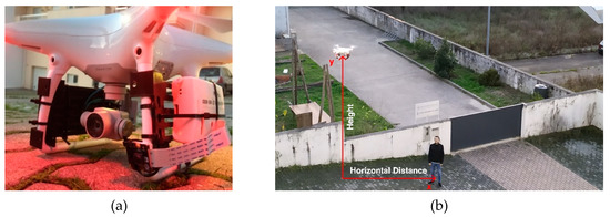 Finally, as the final objective was to implement a solution entirely based on the Raspberry Pi 3, it and the respective Pi NoIR Camera V2 were fixed to the same DJI Phantom 4 with the same orientation configuration (i.e., 45 degrees facing downwards). This approach allowed us to present a final solution using a custom low-cost processing device and camera. For this test, we wanted to find the limits of the customized system, according to the distance and height values. Based on the obtained results, we could discuss the best balance between the accuracy of the model and each distance, to compare it with the previous test scenario that considers a high-quality camera.