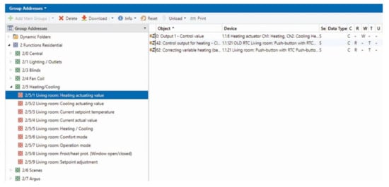 The operation of the individual components of KNX technology is ensured by the means of group addresses (Figure 3).