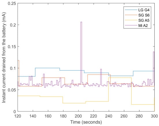 In a similar way, the neural network implemented as the core of an FDS in a HTC Incredible model is found to be the source of up to 31% of the total battery drain in the study presented by Kerdegari et al. in []. The app, which was tested as a background service in the absence of any other application, was responsible for limiting the battery lifespan to a single day.